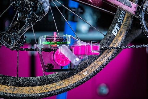 The abrasive cleaning teeth and rotating brush wheels which have 120 contact points cover all areas of the individual chain link for a deep and thorough clean. Finally the excess dirty fluid drops into a second lower reservoir so it’s kept away from the clean chain. No more recycled grime all over the chain! Muc-Off Drivetrain Cleaner is fully biodegradable and is safe to be disposed of down the drain if you previously used one of our bio chain lubes!